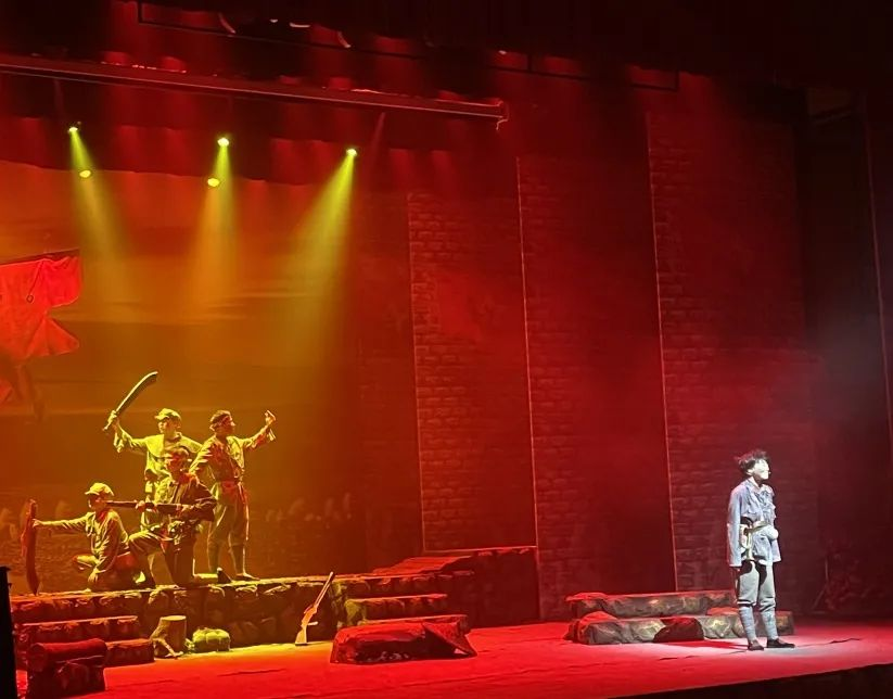 离开界首渡口,大家来到红军突破湘江纪念园,观看了《湘江1934》情景话剧。这部根据真实历史事件改编的话剧,讲述了1934年红军突破湘江战役时,年仅14岁的小红军张六娃为掩护大部队负伤,过老山界时被反动派残忍杀害的故事。短短50分钟的真情演绎,让大家跨越时空,近距离感受到红军将士的高尚情操。